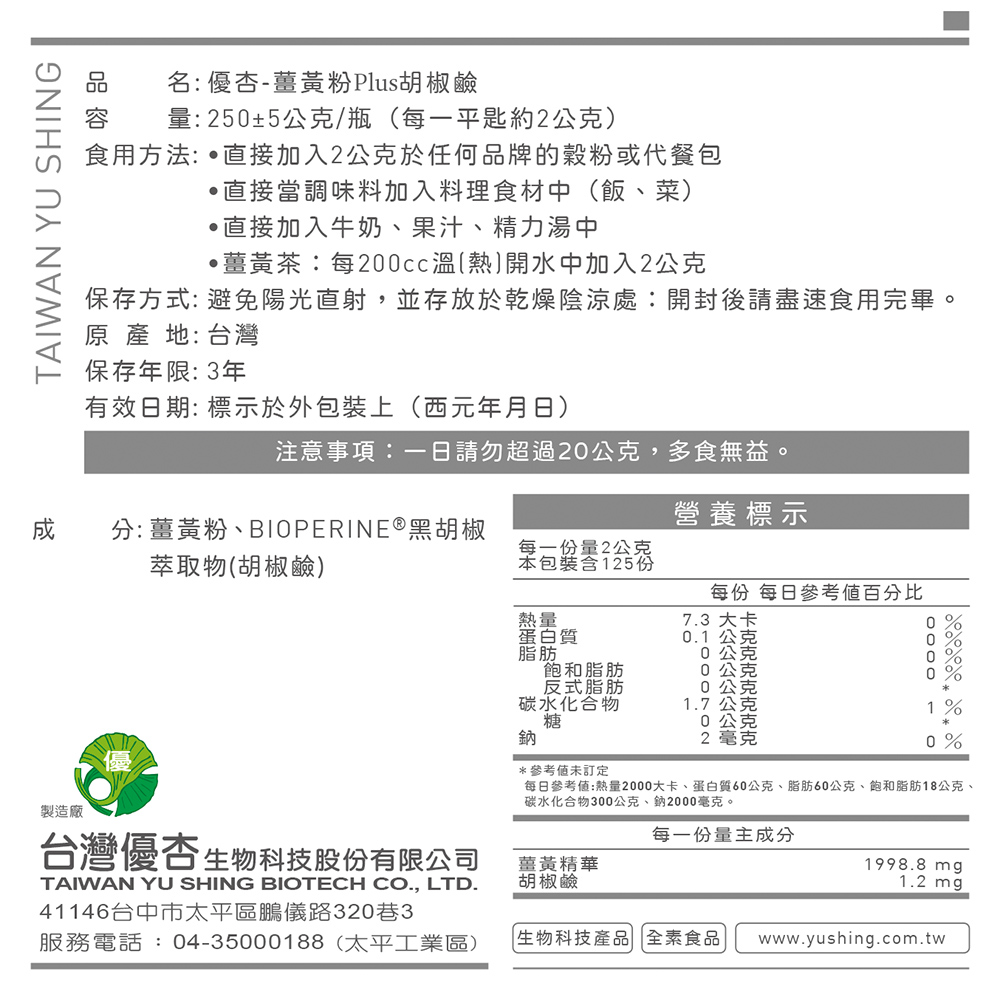 優杏-薑黃粉Plus胡椒鹼(250g/瓶)