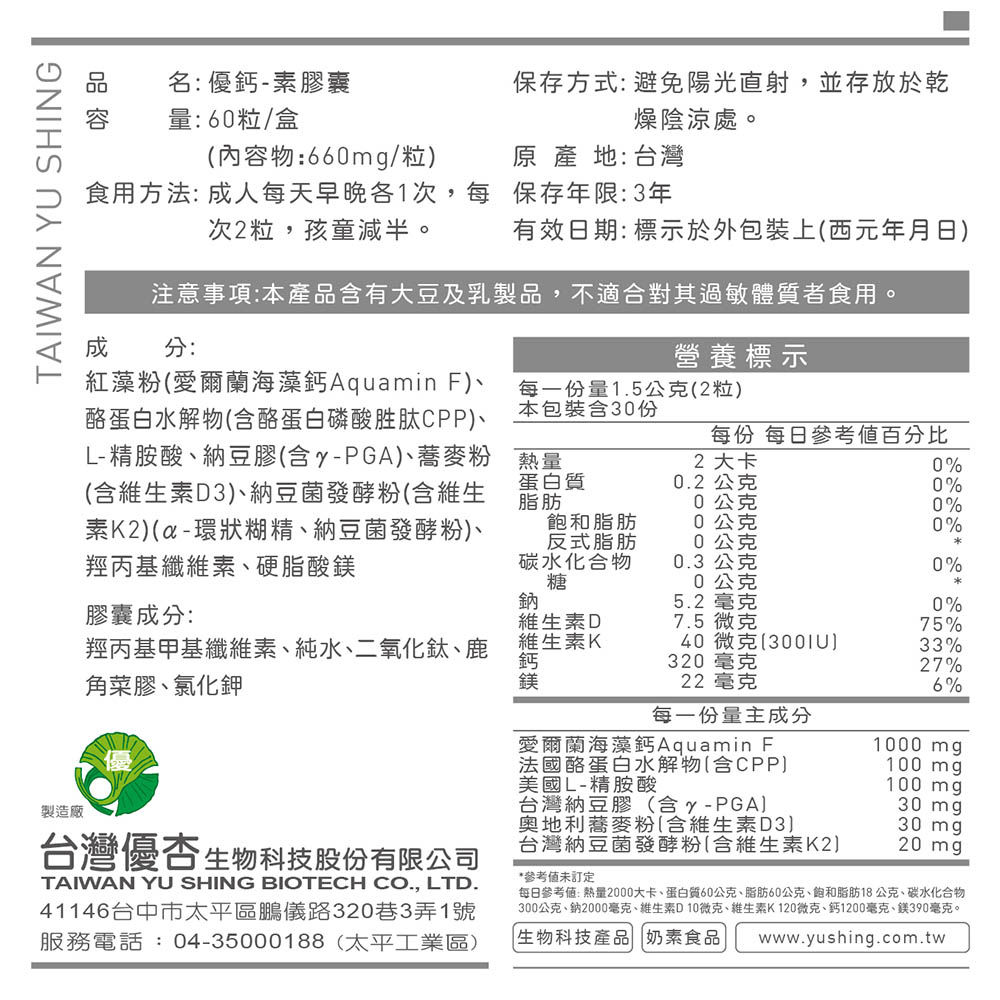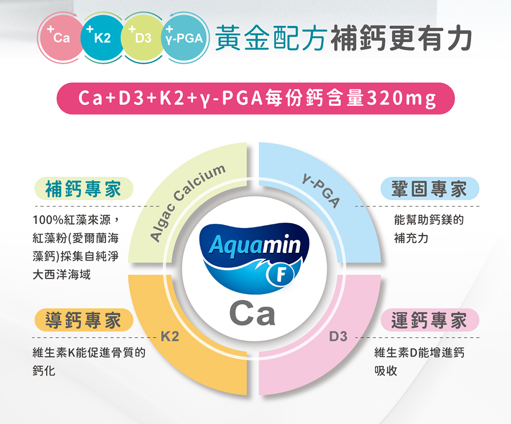 商品編號:1202000018 NT$900NT$792 Ca + D3 +K2 + γ-PGA 每份鈣含量320mg