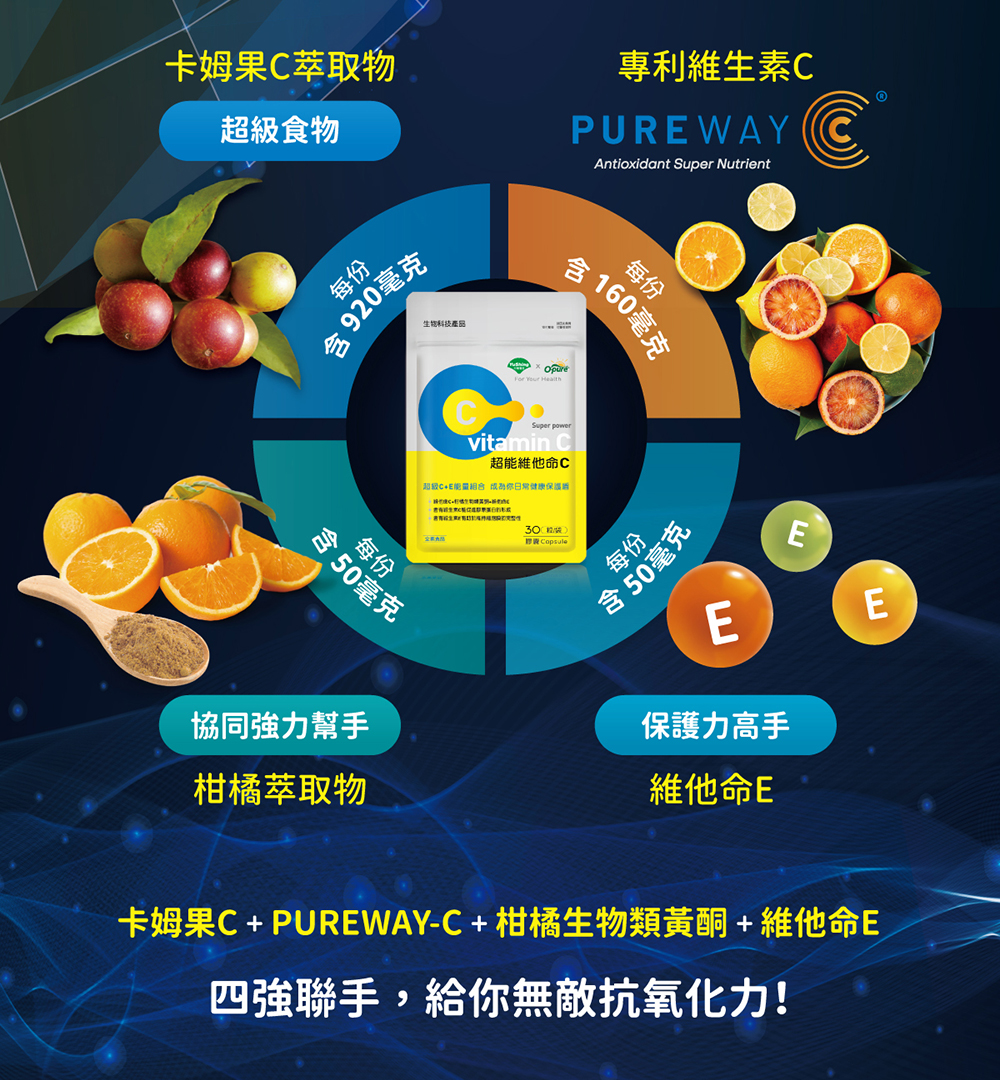 維他命C+柑橘生物類黃酮+維他命E,強強聯手